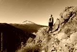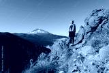 Tourist standing on mountain admiring breathtaking view of volcano Teide, Tenerife, Canary, Spain.