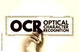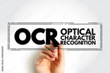 OCR - Optical Character Recognition is the process that converts an image of text into a machine-readable stamp format, acronym technology concept background