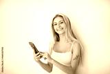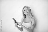 Pretty 18 years old blonde girl posing in studio with white shirt