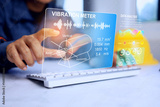 machine monitoring concept with engineer analyze motor vibration test result while working with load on virtual screen for record data and conclusion information to maintenance planning