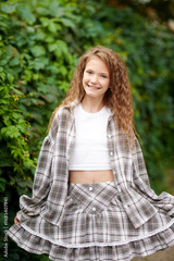 plaid skirt smile
