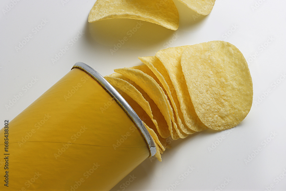 ( Pringles Style ) Dehydrated Potato Chips on white background