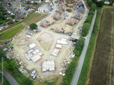 UAV view of the edge of a controversial housing development in rural Essex, UK. The entrance to the development is on the right.