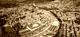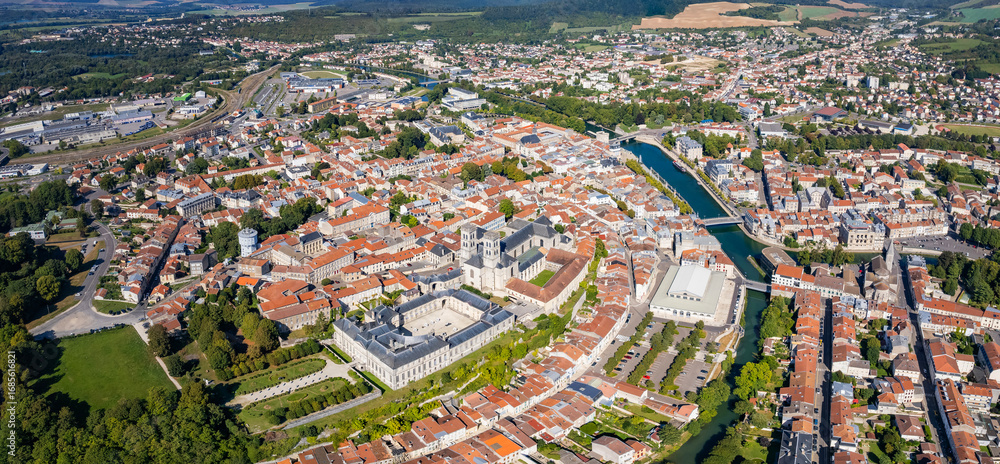 An aerial panorama view around the old town in the city Verdun in France on a sunny day in early spring