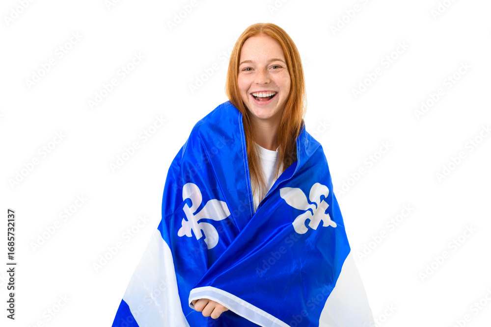 Pretty 18 years old blonde girl posing in studio with quebec flag