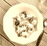 Mato, fresh whey cheese of Catalonia, served on plate with honey and nuts. Traditional Spanish dish.