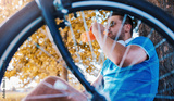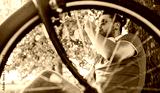 Resting in the park after a bike ride. Lifestyle, sport concept