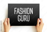 Fashion Guru - a person who is highly knowledgeable and influential in the field of fashion, text concept on card