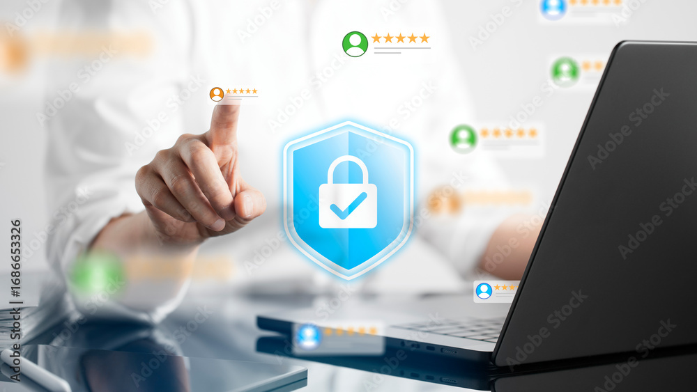 Cyber security and Data Protection Concept with User Authentication, Privacy, and Online Trust.