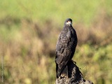 Brazil. Pantanal, Snail kite, Rostrhamus sociabilis, stands on a termite mound and observes the surroundings