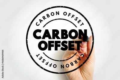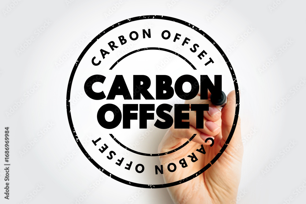 Carbon offset - reduction of emissions of carbon dioxide made in order to compensate for emissions made elsewhere, text concept stamp