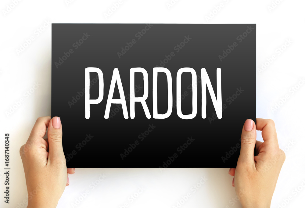 Pardon - the action of forgiving or being forgiven for an error or offence, text concept on card