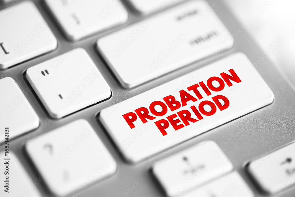 Probation Period - period of employment during which someone is employed only subject to satisfactorily completing this period of time, text concept button on keyboard