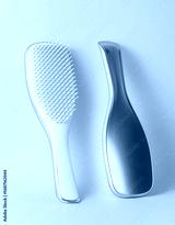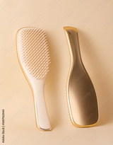 Two elegant hairbrushes resting on a neutral background