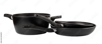 Black cooking pot and frying pans with transparent background