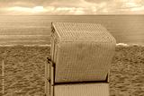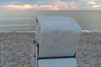 Sylt Island Sunbed Strandkorbe Outsun on the sandy beach at sunset