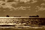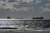 Ship outside the harbor in front of Grenen the branch in Danish is a sandy peninsula near Skagen forming the northernmost tip of Denmark where the Skagerrak and Kattegat seas meet with turbulence