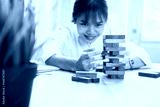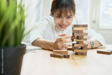 women making a pyramid with empty wooden cubes. Business concept with step-by-step for a firm basis.