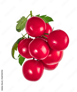 Close-up of fresh red tomatoes bunch on vine with green leaves, isolated on a transparent background. Perfect for culinary, healthy food, and organic farm concepts.
