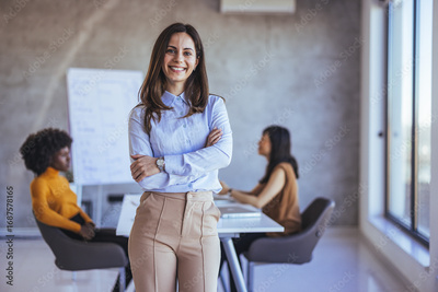Confident Businesswoman Leading a Team in a Modern Office Environment