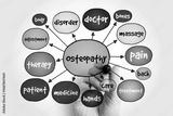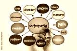 Osteopathy is a type of alternative medicine that emphasizes physical manipulation of the body's muscle tissue and bones, mind map concept background