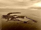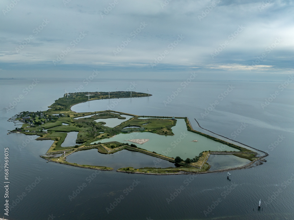 Aerial view of Graen or Adolph's stronghold, unfinished star fort protecting the port of Landkrona in Sweden, today a nature reserve
