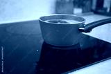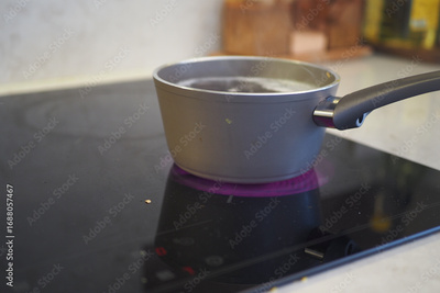 Water boiling in pot on induction cooktop in kitchen