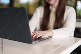 Adult Asian Woman Remote Working Outdoor Typing Laptop Professional Flexible Lifestyle Digital Nomad Job
