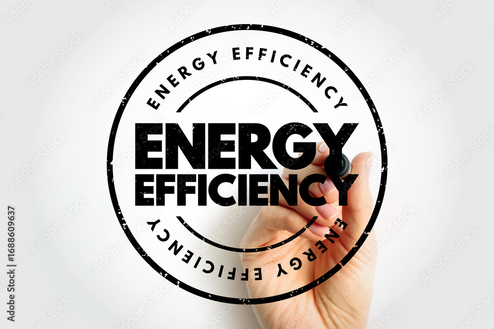Energy Efficiency - means using less energy to get the same job done, text concept stamp