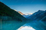 sunset at Kucherla mountain lake with reflection of mountain range. Belukha national park, Altai republic, Siberia, Russia