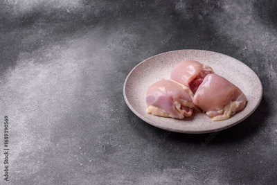 Chicken or turkey raw thigh fillet, skinless and boneless poultry meat. Chicken thigh fillet