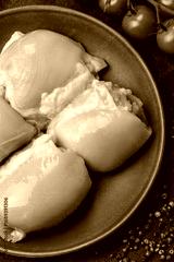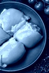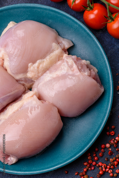 Chicken or turkey raw thigh fillet, skinless and boneless poultry meat. Chicken thigh fillet
