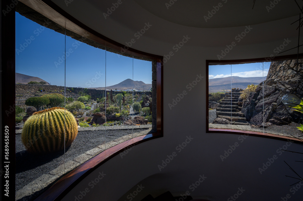 Framed View of Cactus Garden and Volcanic Landscape, Jardin de Cactus, Lanzarote Canary Islands