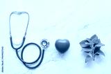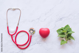 heart monitoring equipment, stethoscope with red heart shape on white background