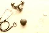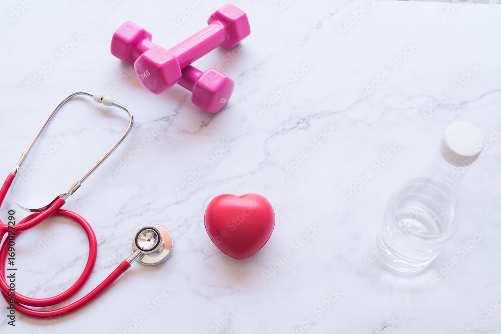 heart monitoring equipment, stethoscope with red heart shape on white background