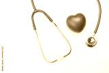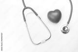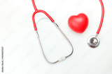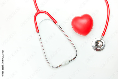 heart monitoring equipment, stethoscope with red heart shape on white background