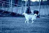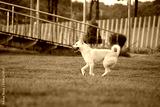Happy White Mixed Breed Dog Running in Green Grass