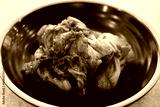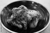 Closeup of Spicy Kimchi Korean Fermented Cabbage Dish in Black Bowl
