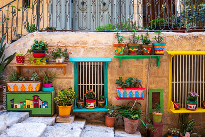 colorful flowers in pots
