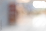 Blurred background inside a building,abstract blur modern interior inside entrance building of office in blue background with orange light effect concept.