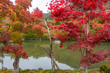 Red maple trees in Eikando temple gardens in autumn, Kyoto, Japan