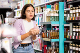 Cheerful beautiful young woman choosing fragrance in beauty store