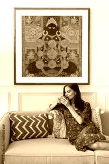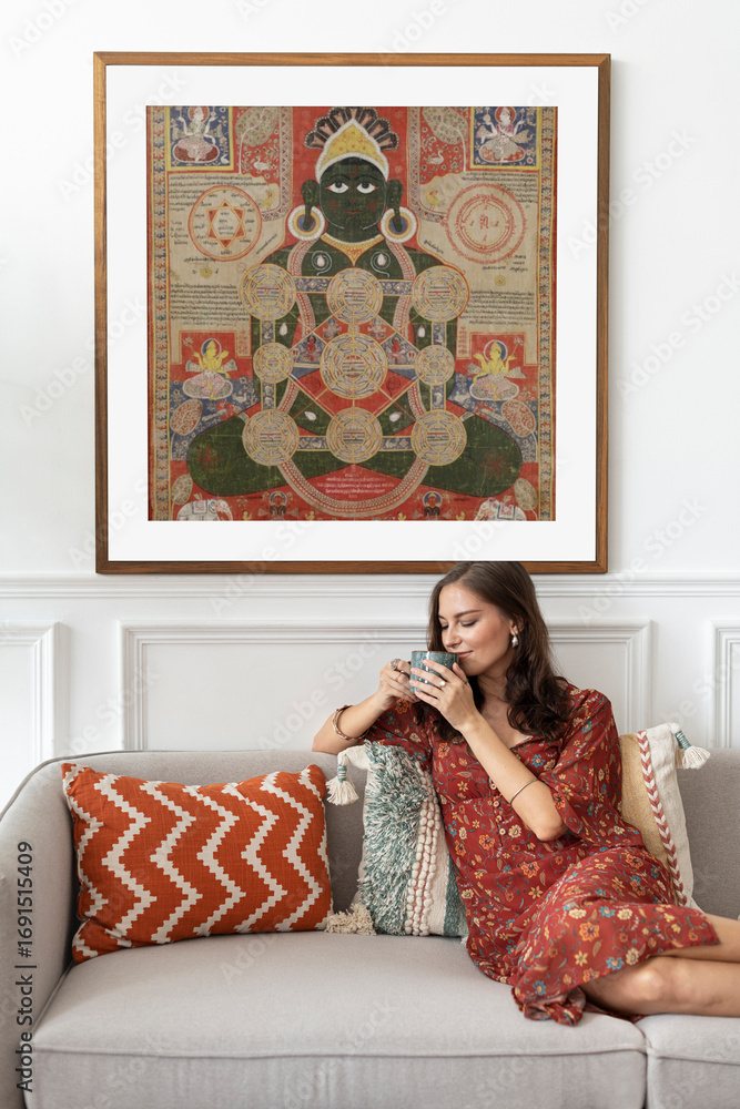 Woman drinking coffee in living room