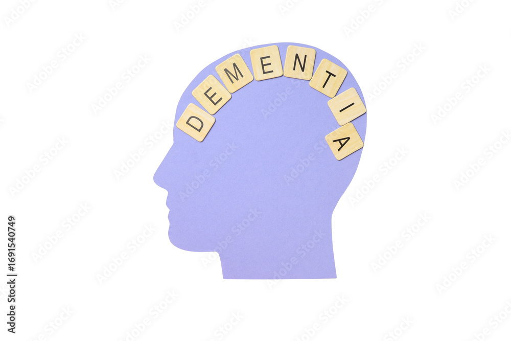 Silhouette of head for dementia awareness, isolated on white, PNG