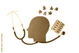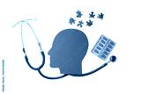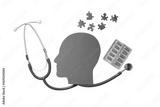 Health symbols: stethoscope, pills, puzzle, isolated on white, PNG