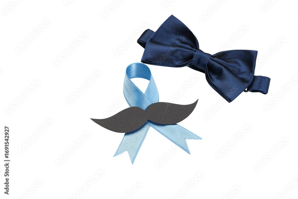 Bow tie and ribbon for prostate cancer, isolated on white, PNG