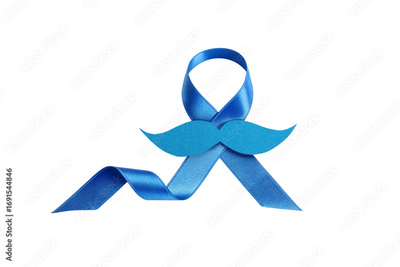 Blue ribbon and mustache for prostate cancer, isolated on white, PNG