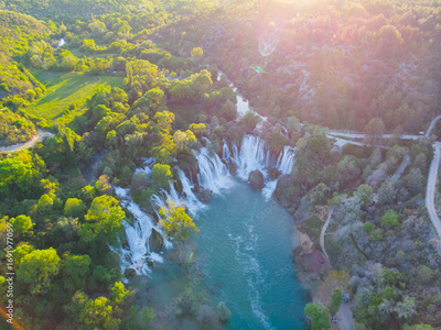 Aerial view of Kravice waterfall in Bosnia and Herzegovina