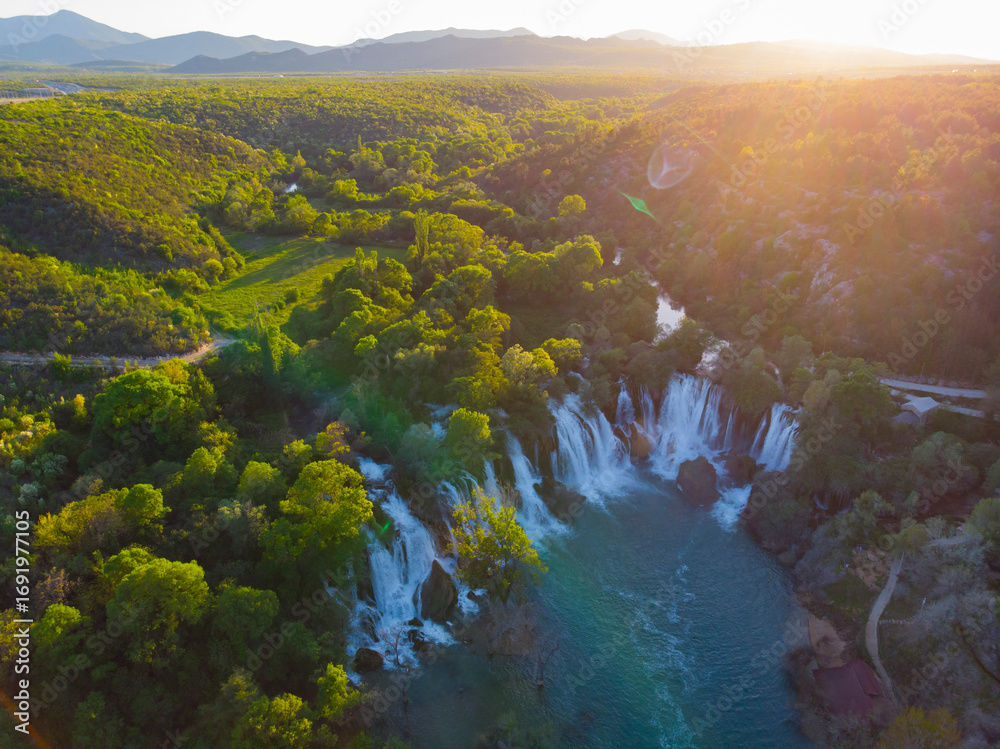 Aerial view of Kravice waterfall in Bosnia and Herzegovina