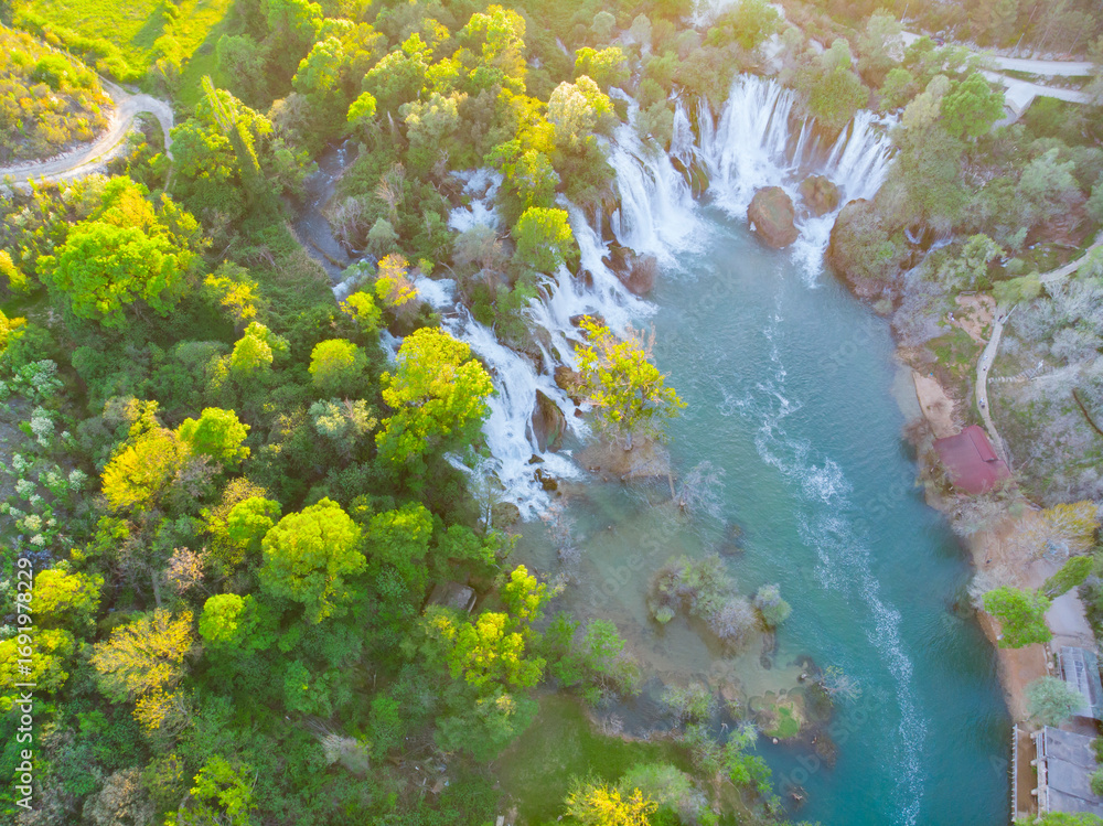 Aerial view of Kravice waterfall in Bosnia and Herzegovina